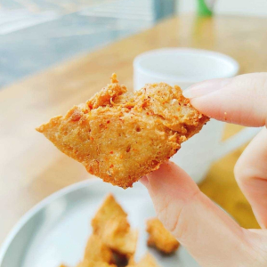 用氣炸鍋或油炸都可以,熱熱吃最酥,放一下也不會油膩。當正餐配菜、嘴饞時拿來吃,或是 配茶、配飲料、配朋友聊天 都超合,常常一包還沒回神就吃完了。