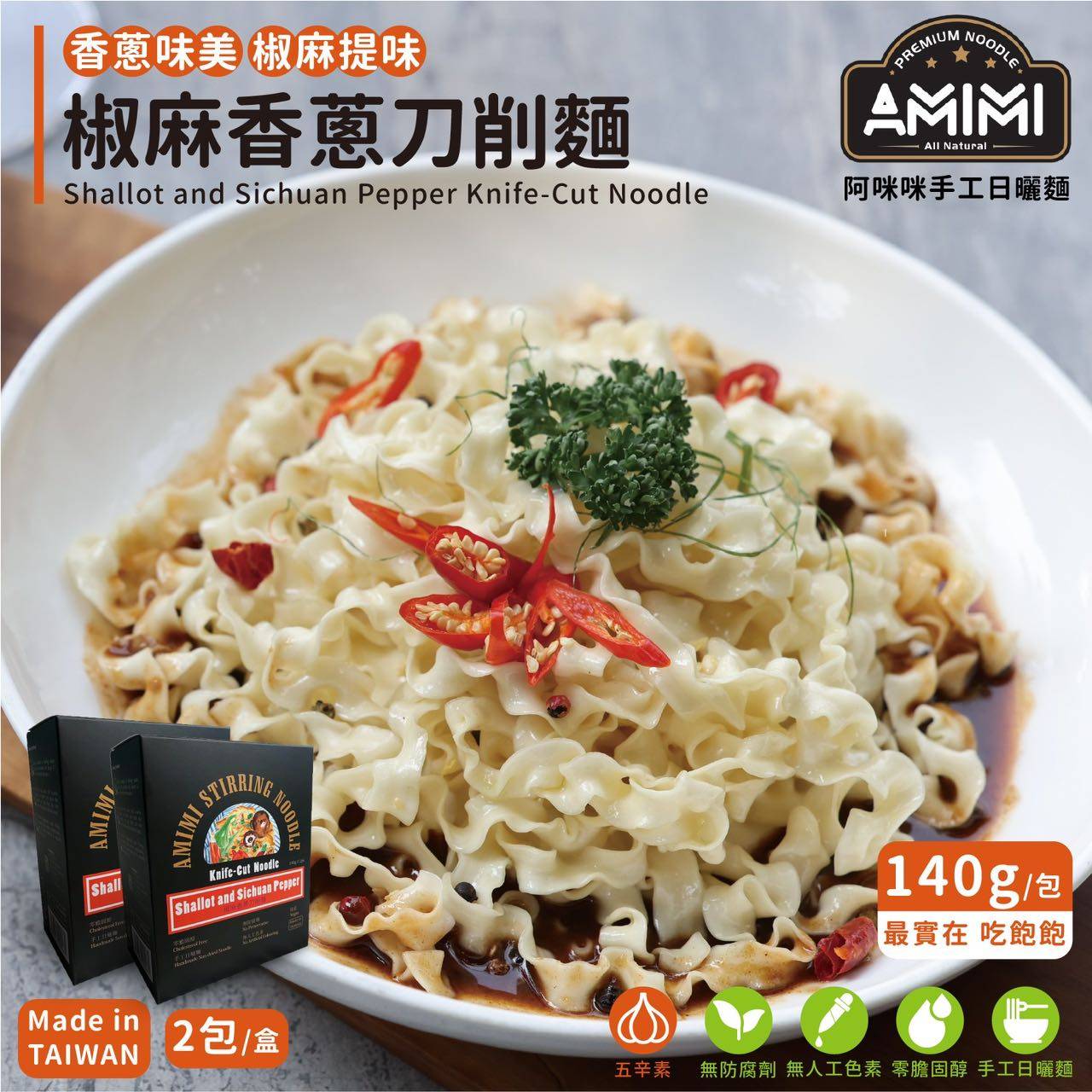 Amimi 阿咪乾拌麵-椒麻香蔥刀削麵 140g*2包/1盒