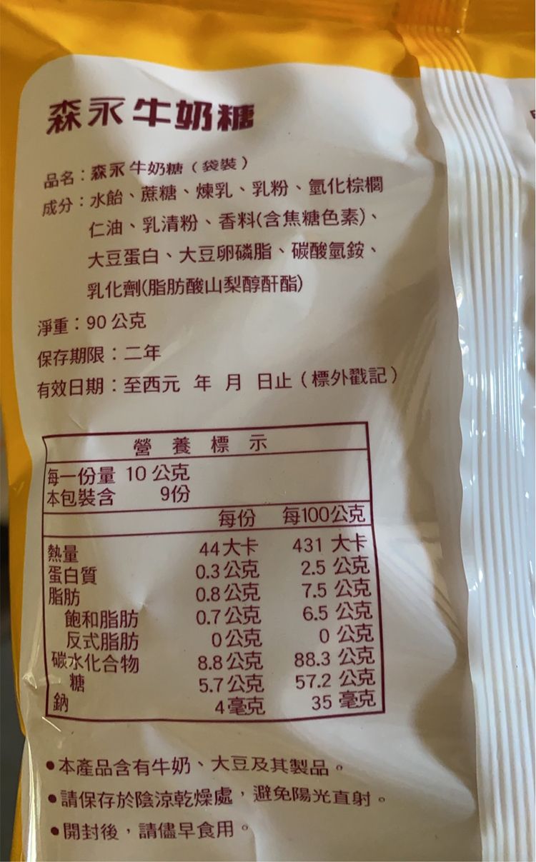 *本產品含牛奶,麩質穀物,大豆