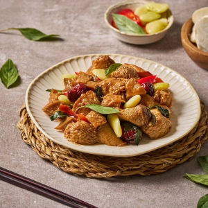✔ 以老薑和辣椒大火快炒爆香加入九層塔保留特殊鑊氣
